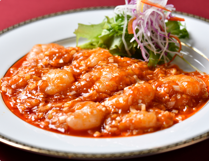 殻をむいた海老に丁寧に下味をつけて旨味を凝縮し、特製のコクのあるチリソースと絡めてワンランク上の味わいを表現しました。