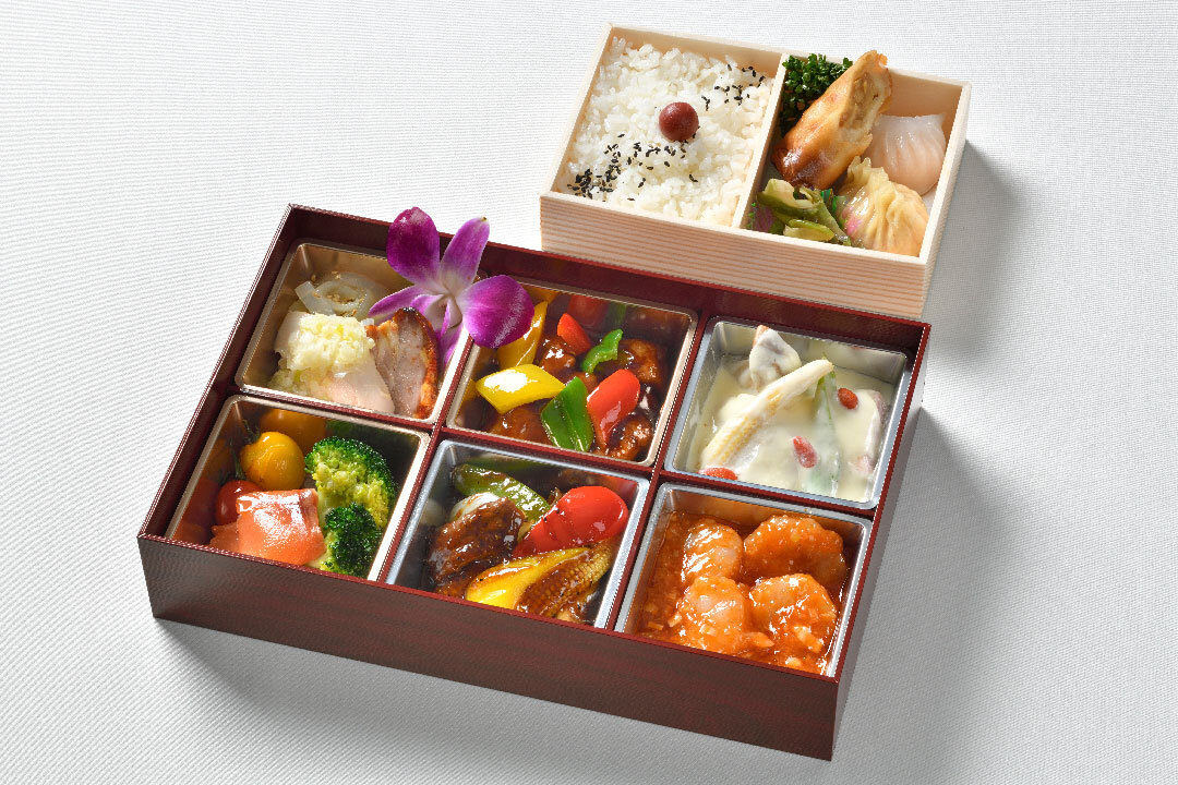【内容】・蒸し鶏の葱ソース・黒酢の酢豚・フカヒレ餃子・クラゲの和え物・牛肉の黒胡椒炒め・海老蒸し餃子・特製叉焼・海老のチリソース煮・春巻き・帆立のミルク炒め・野菜のマリネ