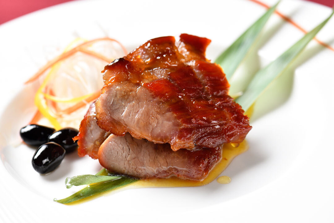 【内容】◆前菜盛り合わせ(蒸し鶏の葱ソース、クラゲの甘酢漬け、特製叉焼) ◆特製春巻 ◆フカヒレ蒸し餃子 ◆広東焼売 ◆牛ステーキの豆鼓ソース ◆大エビのチリソース煮 ◆純白のビアンカの特製黒酢酢豚
