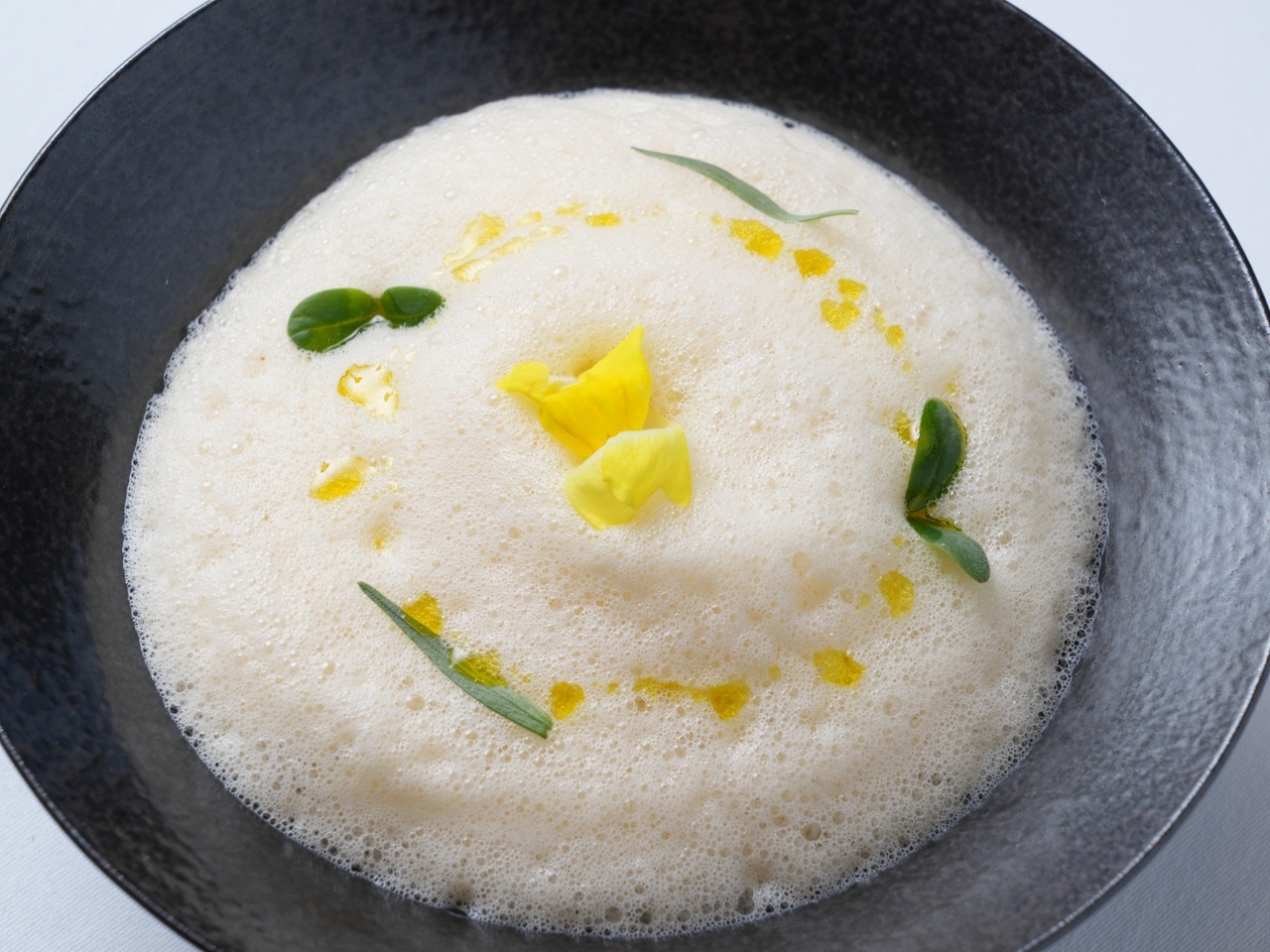 • Warm salad of six-row barley and squid with sea urchin-flavored foam
