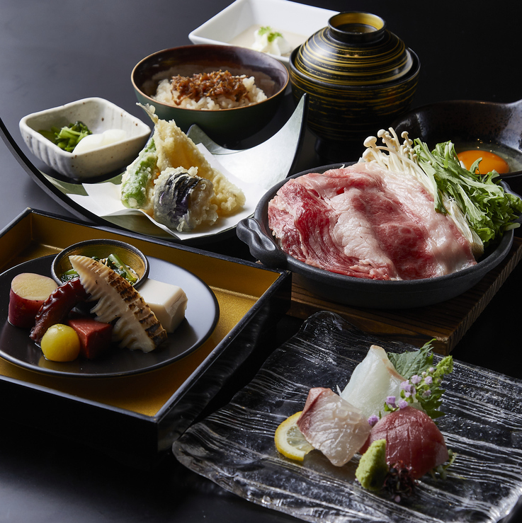 近江牛のすき鍋がお楽しみ頂けるカジュアルなお昼のコースです。