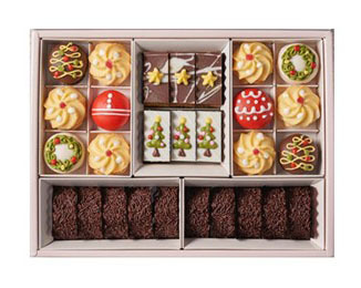 Christmas-only petit fours designed with Christmas wreaths and Santa Claus motifs. The soft cookies are vanilla cookies sandwiching three cream flavors (cafe, strawberry, apple butter), and the pound cakes are fruit cakes inspired by the starry night sky and chocolate and butterscotch caramel flavors with fir tree patterns. [Contents] 28 pieces of 7 flavors [Sales period] December 1st to 25th