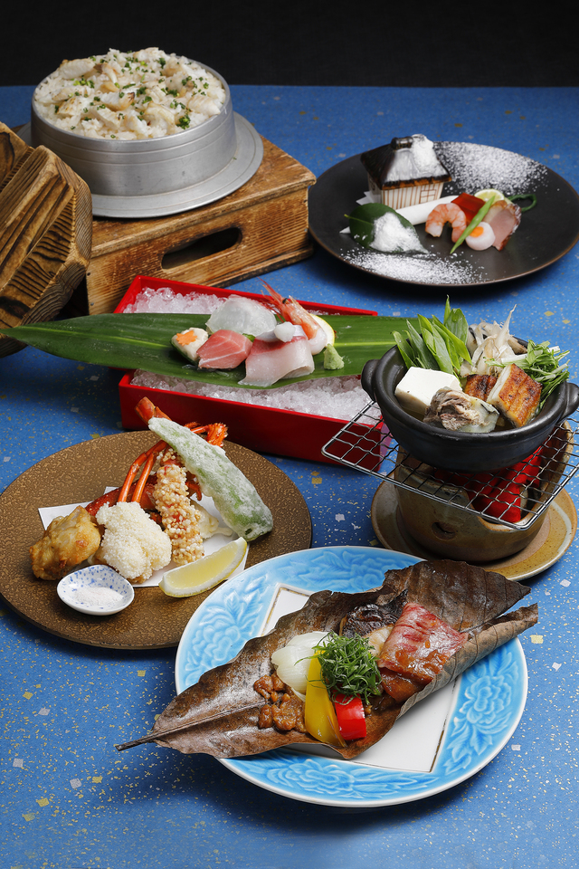 Kobe beef, spiny lobster, sweetfish, and abalone special kaiseki course June