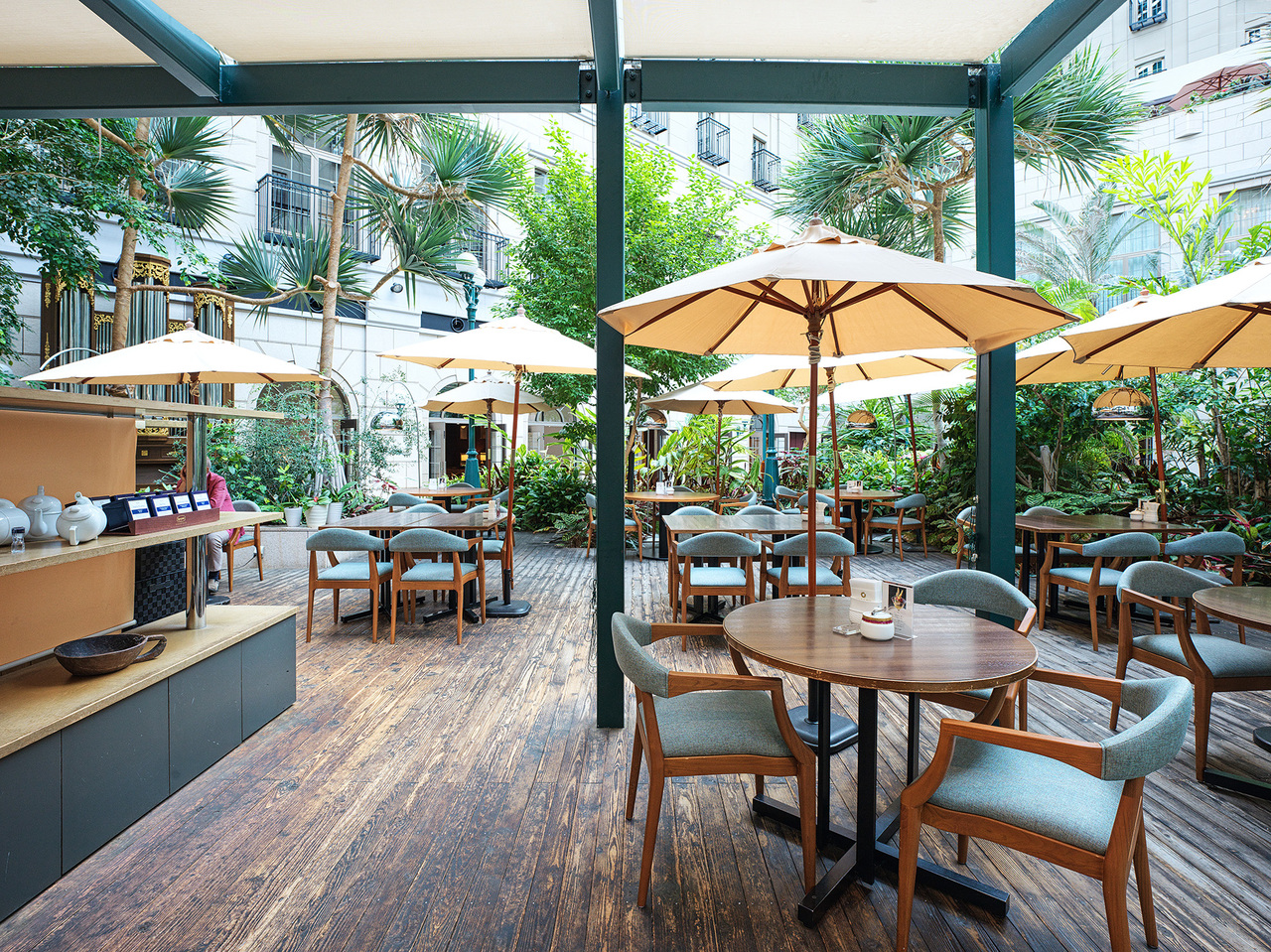 こだわりのコーヒー、紅茶、フレッシュジュースと、手づくりのスイーツをご用意。緑あふれる解放的な空間で、ティーブレイクをお楽しみください。また、多彩なカクテルなどが楽しめるバータイムはティータイムと違ったおとなの雰囲気が魅力。