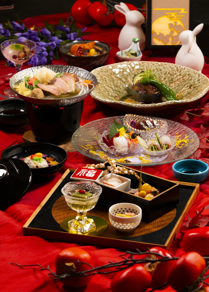 ・Himiko steamed sea bream and scallops with the aroma of koji and dressing made with Ishino miso ・Mishima vegetables and a gift from Suruga Bay, seared red fish and vegetables from the foot of Mt. Fuji ・Medicinal soup made with local chicken and white jellyfish, dedicated to Yang Guifei ・Brand pork soy milk collagen hot pot with special sesame ponzu sauce and green and yellow vegetables ・Roasted local chicken with the aroma of Japanese pepper and perilla ・Condiments made with Mishima green onions and foot of Mt. vegetables ・Medicinal porridge with pumpkin and soft-shelled turtle soup ・Due to availability of sweets, some of the contents may be changed.