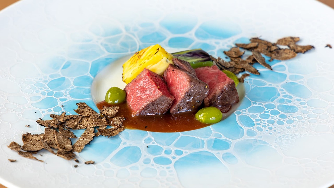 Enjoy a standard course meal (8 dishes) in the dining area with ocean views. Includes wine pairings carefully selected by a sommelier and sake carefully selected by SakeDiploma (4 wines and 2 sake glasses).