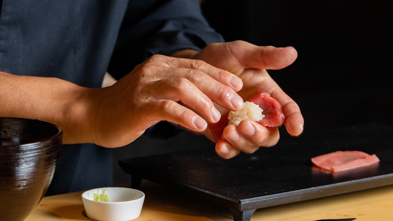 The main course is nigiri sushi made by Chef Odaka, who has trained for 12 years and served as head chef at LaBOMBANCE Nishi-Azabu main store and sister store Sudachi in Minami-Aoyama. The chef will be showing off his cooking skills right in front of you, and you can enjoy the live performance at the counter seats.