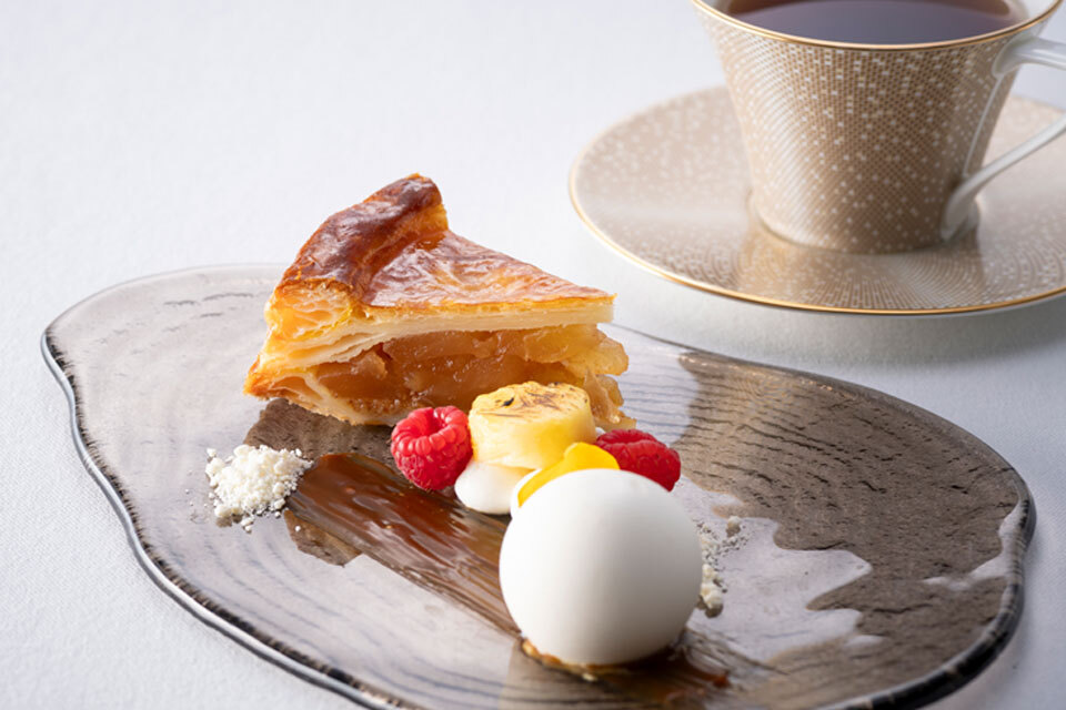 A limited-time Christmas special set. Enjoy a sparkling cocktail blending the refreshing sweetness of lychee and the gentle tartness of strawberry, an appetizer plate featuring locally sourced Osaka ingredients, and a Paris-Brest parfaitwith rich pistachio butter cream.