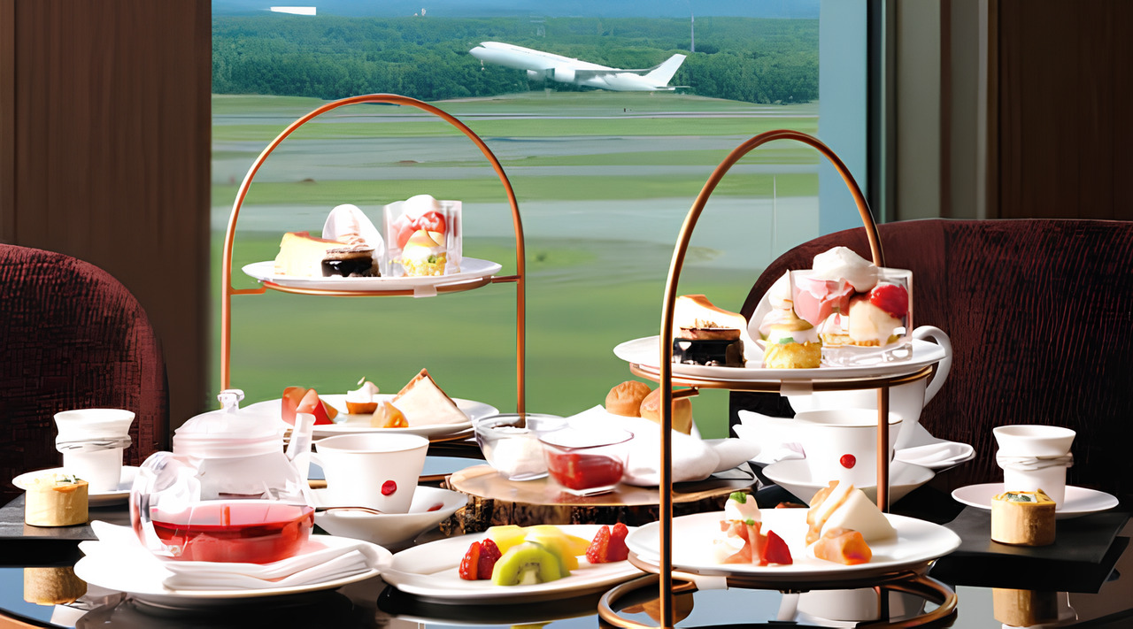 ホテル8階「THE BAR」で飛行機を眺めながらお楽しみいただけるアフタヌーンティーセットです。