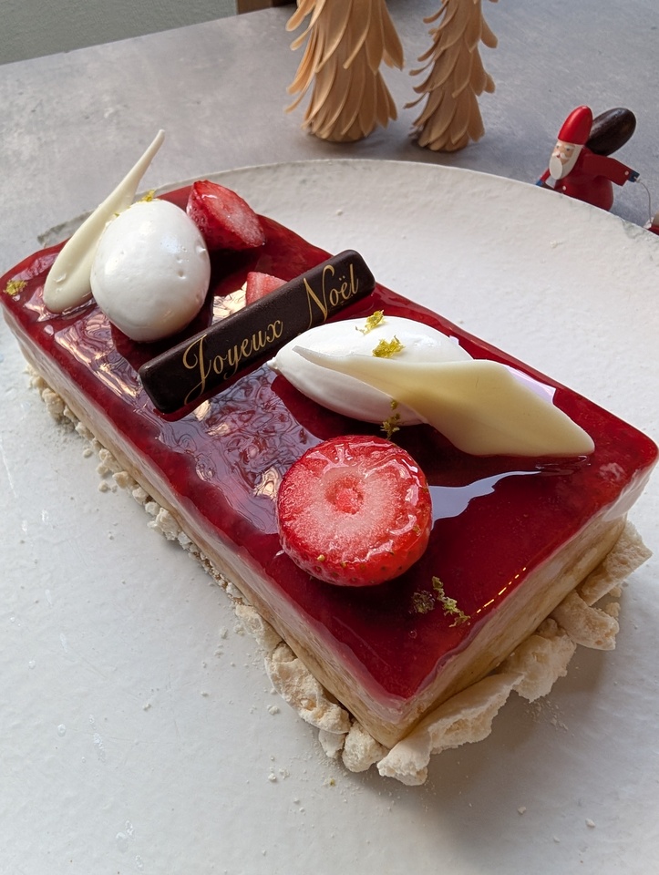 タルト生地にベリーのガナッシュ、バニラとレモンのムース、いちごのムース、いちごのジュレ、飾りにもいちごとレモンゼストを使ったいちごとレモンの協奏曲