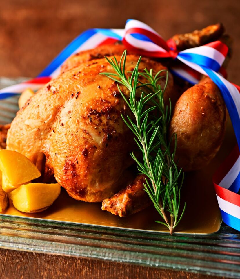 国産鶏まるまる1羽を使ったローストチキン。