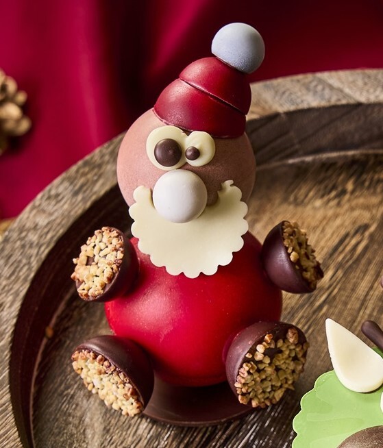 A delightful holiday-party centerpiece featuring charming snowman and Christmas tree motifs. Delicately layered pistachio sponge, panna cotta, and chantilly cream, with raspberry jelly and milk chocolate mousse, create contrasting textures and flavors. The tree is crafted from milk chocolate and pistachio—enjoy the full, rich taste of pistachio. (Approx. 15 cm in diameter)
