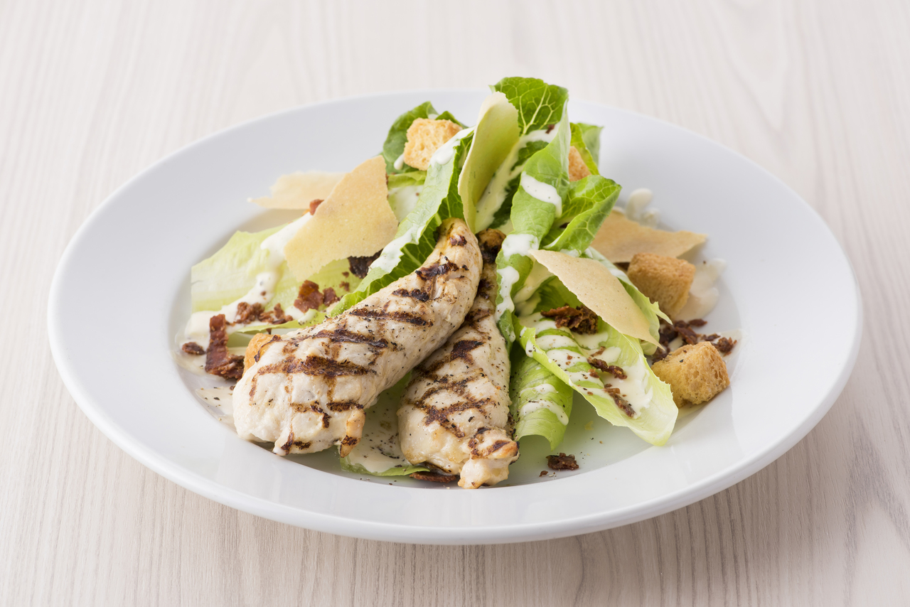 Romaine lettuce, grilled chicken, parmesan cheese, croutons, bacon
