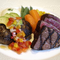 ■ 100% aged Kuroge Wagyu beef hamburg steak with various sauces & carefully selected grilled aged Kuroge Wagyu beef steak (choose your favorite hamburger sauce)