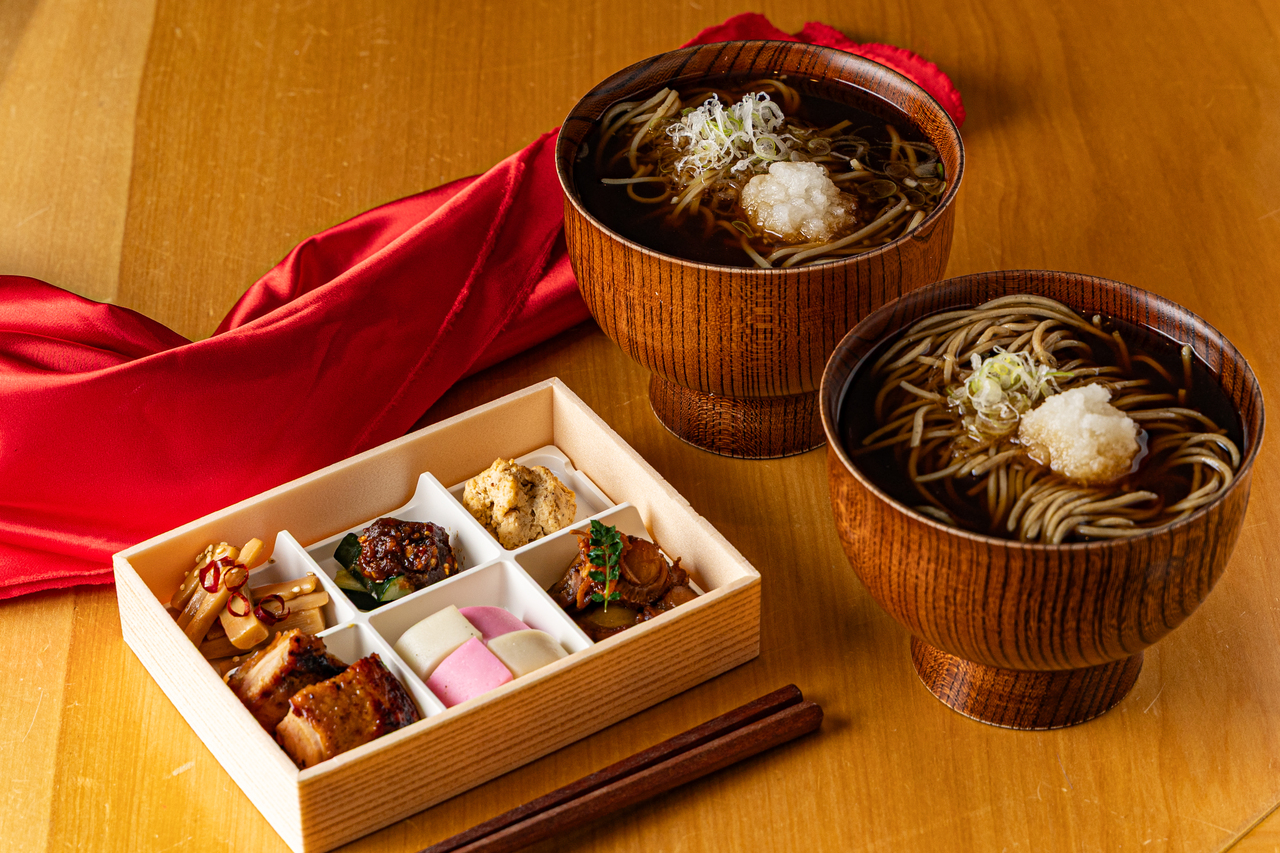 Enjoy two servings of Toshikoshi soba noodles and a classic Tou dish!