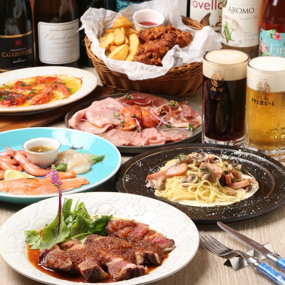 ●Beef tongue plate like a carpet ※Full of volume! Approximately 15.6 pieces per person! ●American beef ribs ●Spicy chicken wings ●Pork shoulder loin ●French fries with skin ●Fresh salad with fresh vegetables ●White rice ※Free refills! Enjoy to your heart's content. ★Chef's proud homemade sauce Chimichurri sauce A sour herb sauce! It goes great with meat. The manager's recommended sauce! ・Garlic sauce A strong garlic taste! A sauce that will whet your appetite! ・White leek sauce A sauce made with plenty of leek! You can also pour it over rice! ★Additional option menu ・Garlic shrimp 3 pieces 400 yen (tax included) ・Grilled squid 600 yen (tax included) ・Scallop with shell 1 piece 500 yen (tax included) The course time limit is 120 minutes. The last order for all-you-can-drink is 30 minutes before. ・All-you-can-drink is self-service. Please enjoy your favorite drink♪ ・Free refills of white rice♪