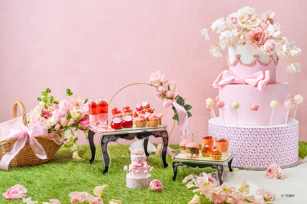 メニューには、リカちゃんが大好きないちごとローズをテーマ食材として使用し、“Sweet Picnic”をイメージしたアフタヌーンティーに仕上げました。ピンクや赤を基調とした華やかなスイーツ&セイボリーは、洗練された味わいと、思わず写真に収めたくなる愛らしさが魅力です。チョコレートロリポップがのった大きなタワーケーキにも注目。スタッフがお席までケーキタワーを運び、目の前でロリポップを提供します。また、5月26日(火)からは一部メニューを新緑をイメージしたピスタチオグリーンにチェンジし、季節の味わいの変化もお届けいたします。