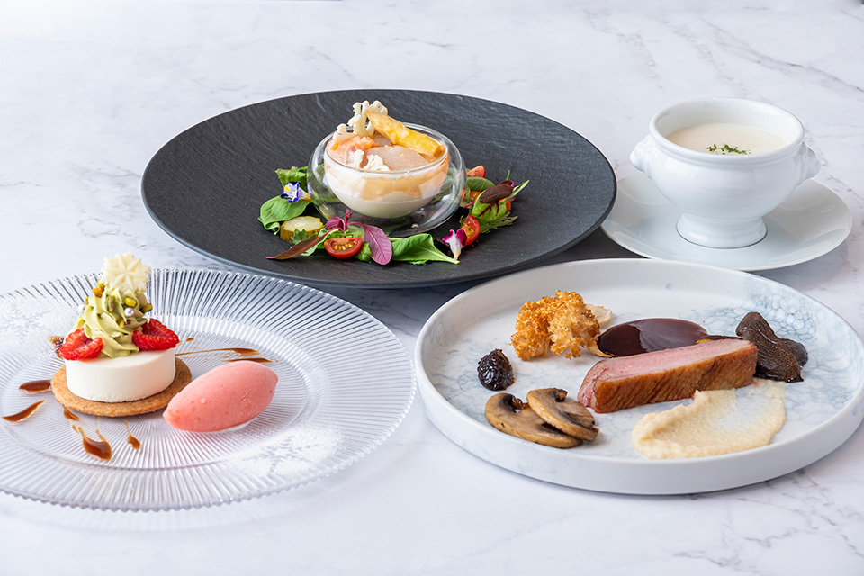 ・レストランでご提供している全ての食材を同じ厨房内で調理しているため、アレルギー原因物質が混入する場合がございます。専門医にご相談の上、お客さまご自身で最終的なご判断をいただきますようお願いいたします。