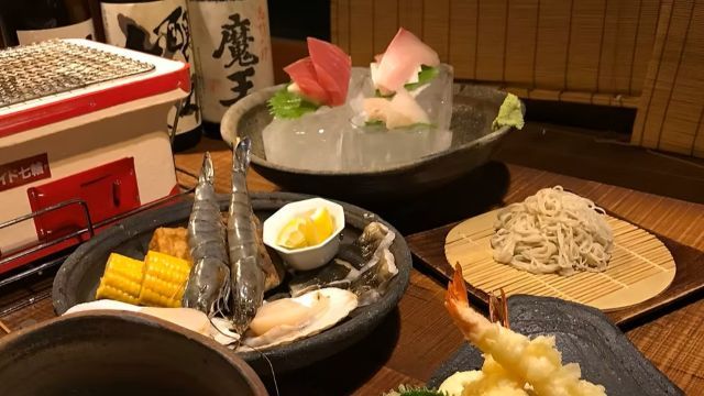 ・Freshly made nigari tofu ・Three kinds of sashimi caught that morning ・Three kinds of charcoal-grilled seafood platter ・Freshly fried tempura ・Hand-made soba noodles (sobakiri or kakesoba) made from stone-ground flour used in-house. *For customers who wish to have all-you-can-drink, a 120-minute last order is available for 2,500 yen (excluding tax).