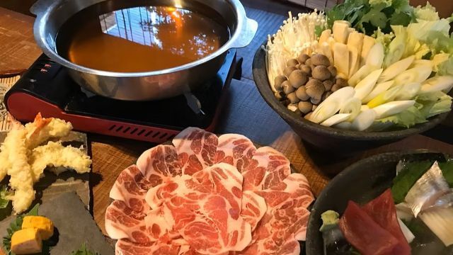 This set includes a platter of hot angel shrimp and vegetable tempura, along with freshly made handmade soba noodles made with flour sourced in-house.
