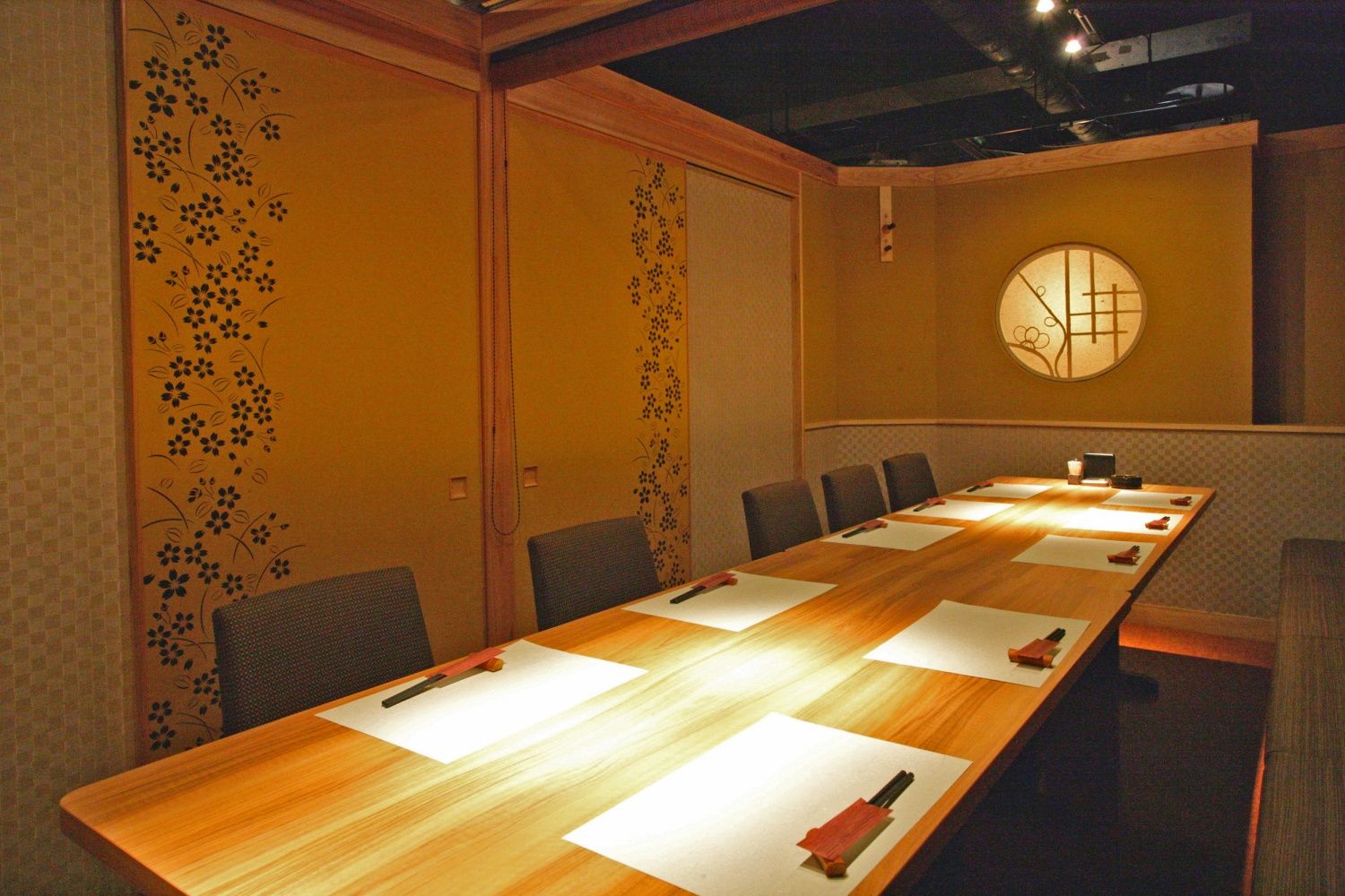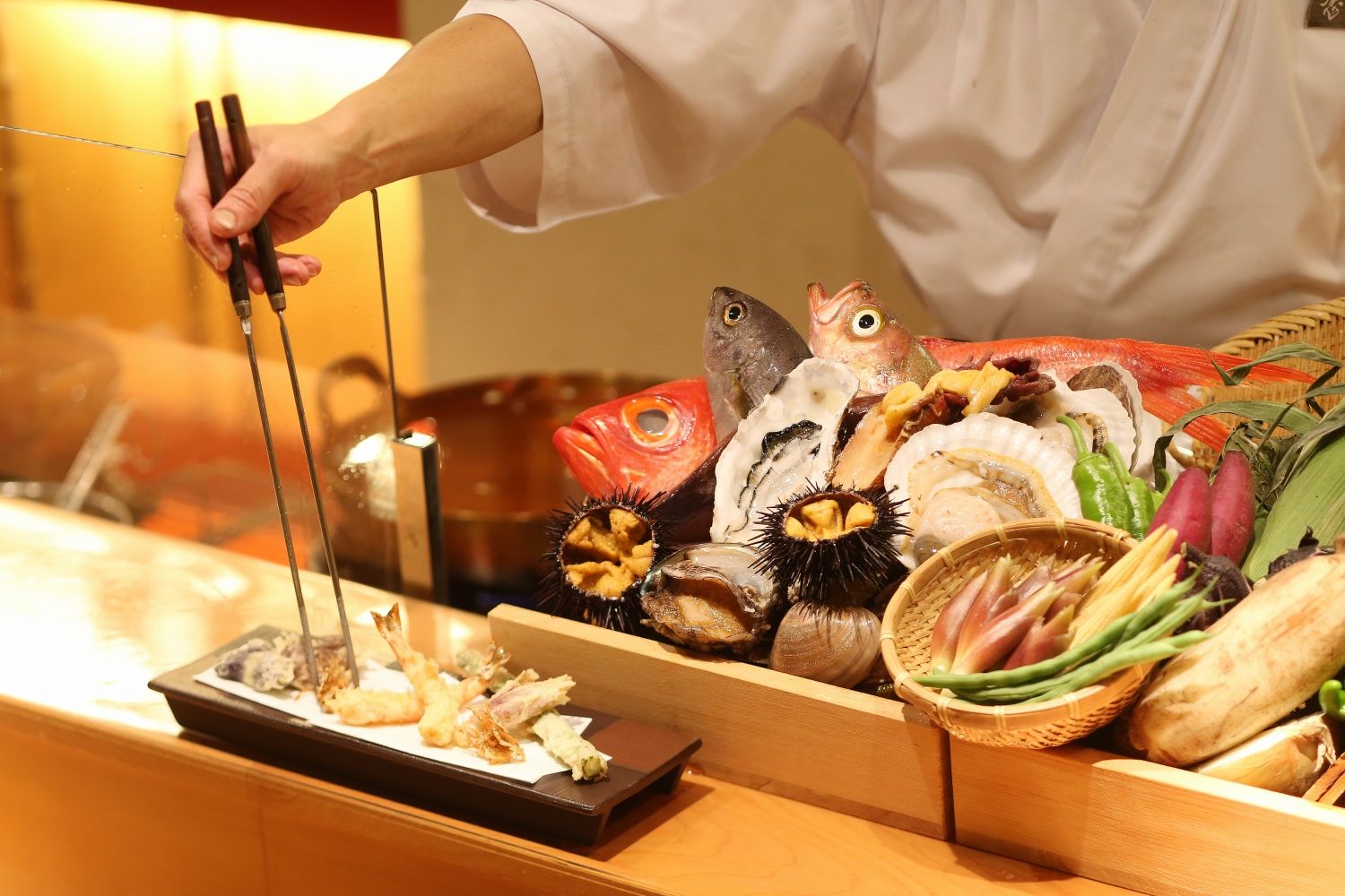 カウンター席で味わう揚げたての天婦羅や素材の魅力を引き出した数々のお料理をお楽しみ頂けます。 ゆったりと落ち着いた雰囲気の個室・半個室のお席は、接待・会食などにおすすめです。
