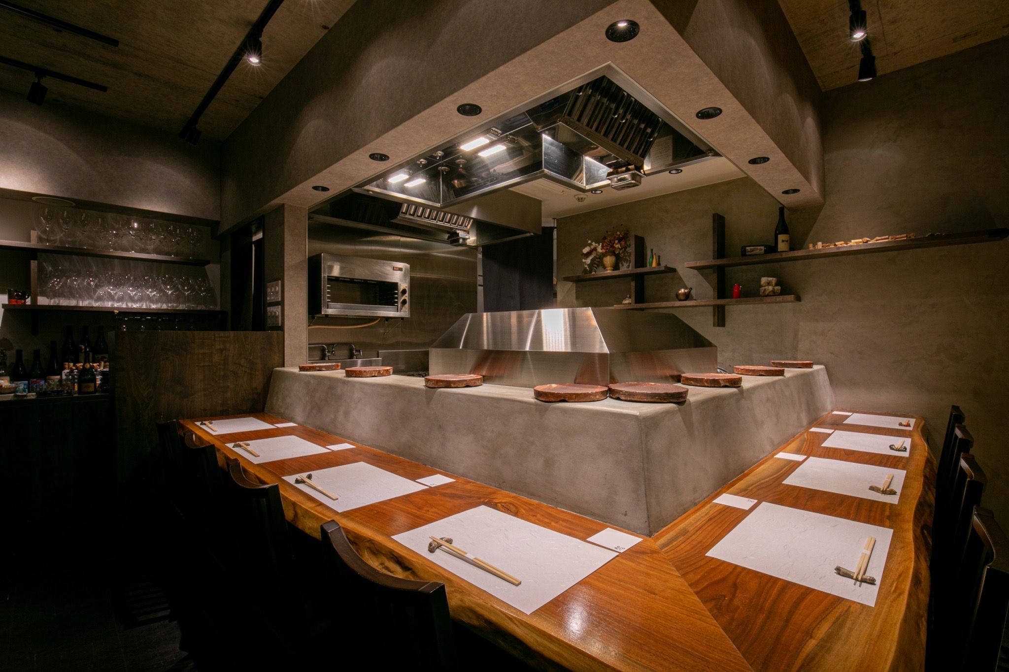 店内は小さいながらもモダンで落ち着いた雰囲気で、リラックスしてお食事をしていただけます。また、料理を作る様子を楽しめる一枚板のカウンター席、テーブル席など座席の種類が豊富です。接待や女子会など様々なシーンでご利用いただけます。美味しい天ぷらを味わいたい方のために、旬の食材を使用したメニューをご用意。さらに、ソムリエが料理と合うワインをご提供しますので、一緒にお楽しみください。
