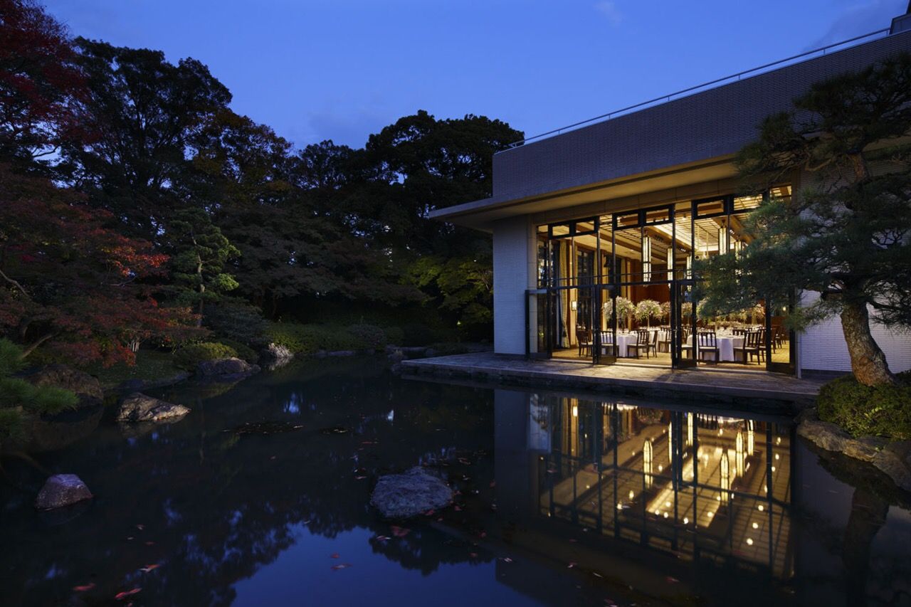 This modern steak house is reminiscent of a Meiji era gathering hall. The view of the park is relaxing during the day and romantic at night. Lunch dishes such as steak and chips are available for takeout. For dinner, choose a main course meal or entrees such as chargrilled steak. Dessert is also superb.