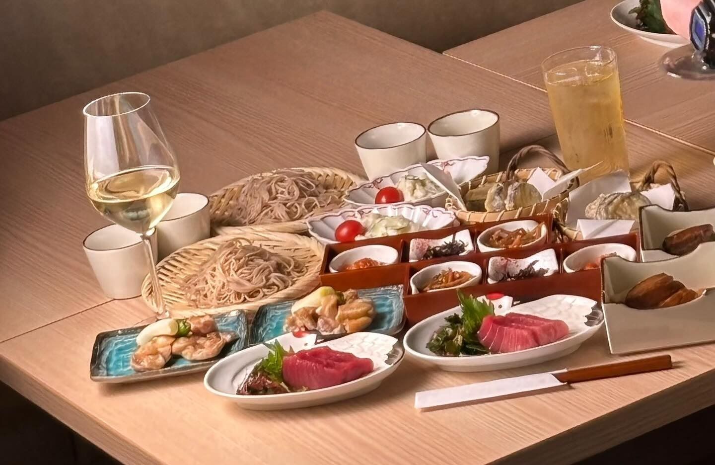 Tsurumatsu is a cozy soba and sake bar tucked away in a quiet alley near Tameike-Sanno Station (3 min walk). Enjoy fragrant handmade soba and seasonal small dishes paired with sake or wine. With its relaxed, refined atmosphere, it's ideal for business dinners or solo drinks.