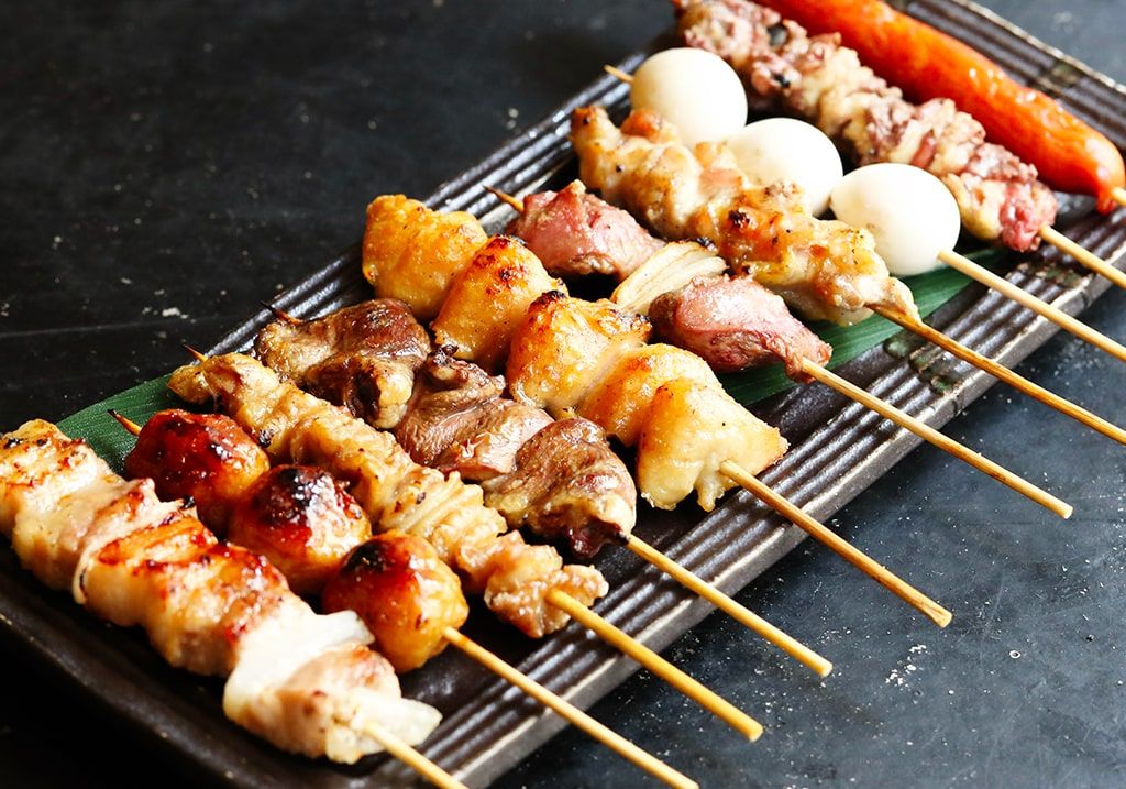 Enjoy premium yakitori grilled on Kishu Binchotan and Kumamo