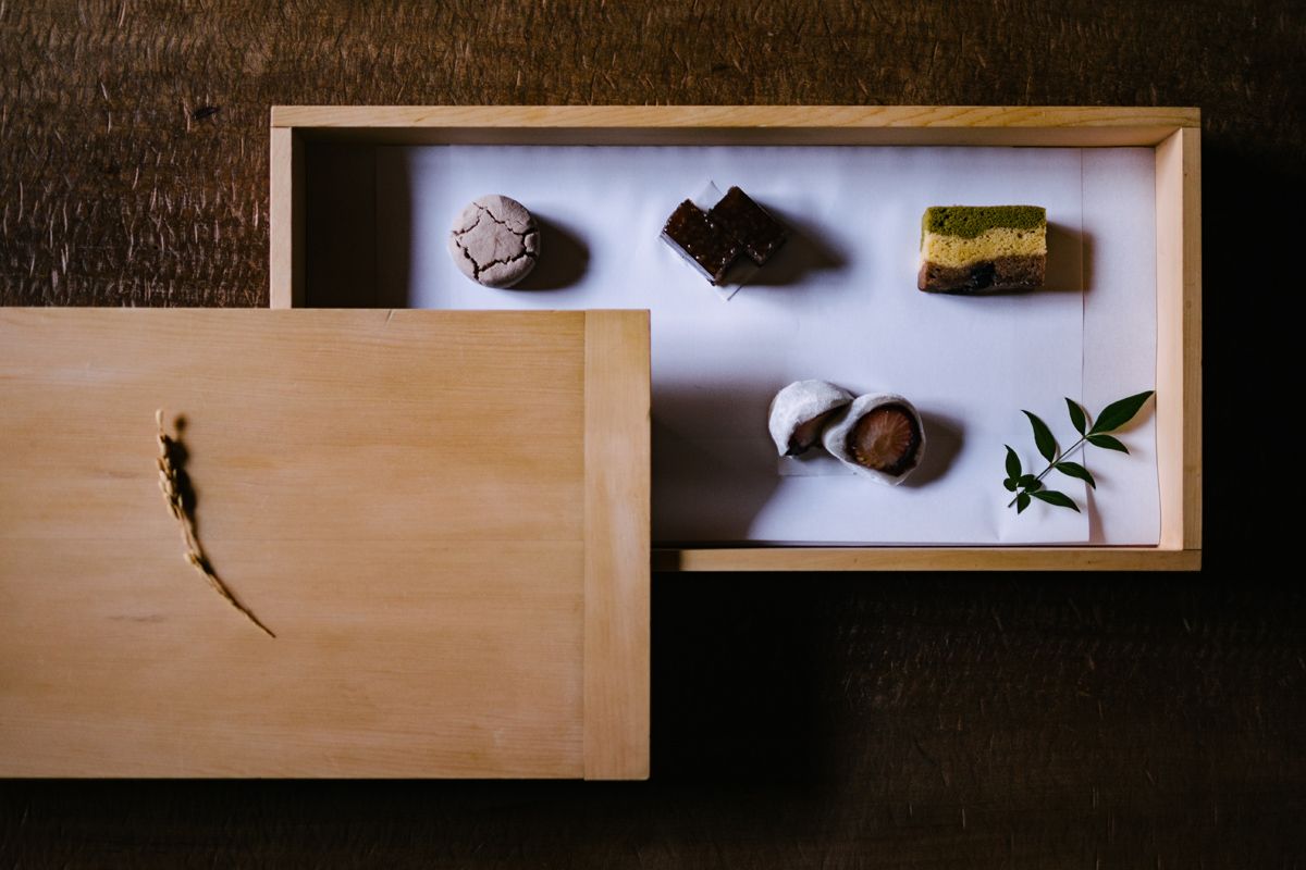 Tea and seasonal wagashi — bite-sized confection set