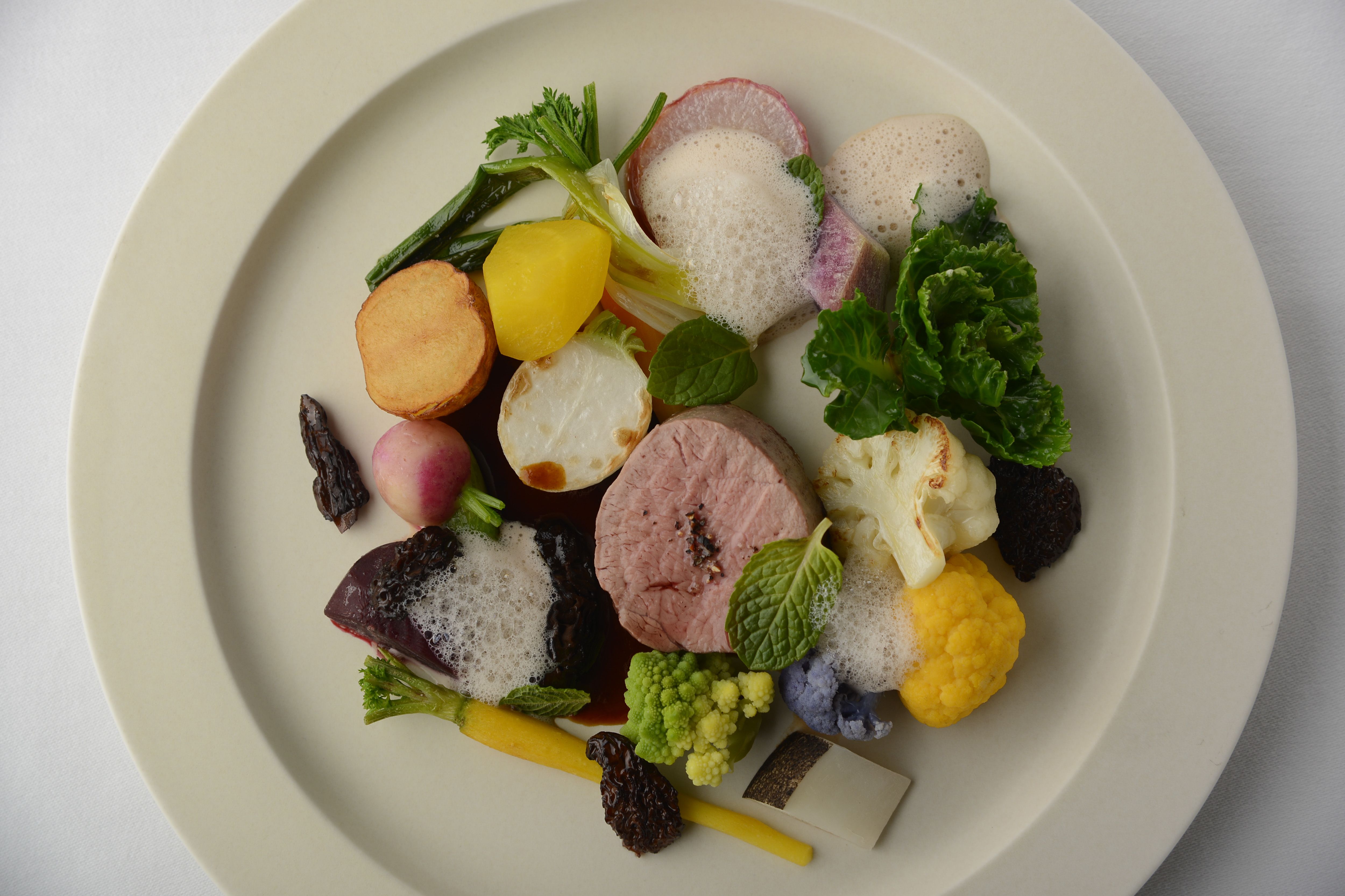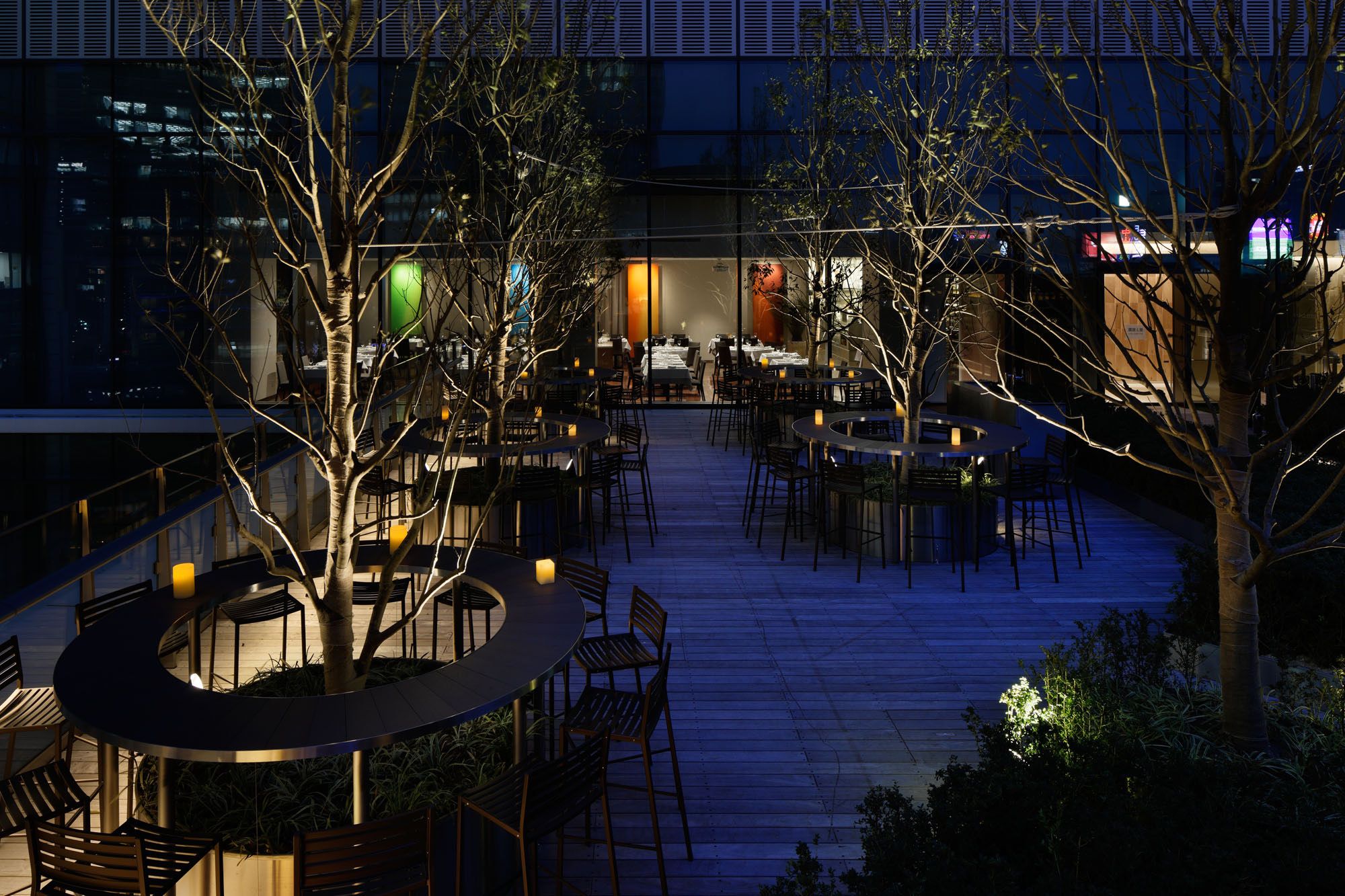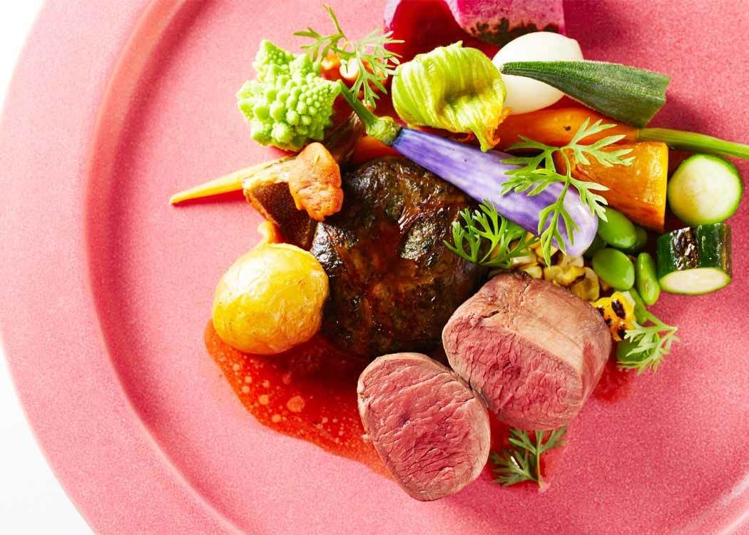 お料理はコースだけでなくお好きな料理を一品からオーダーできます。 ビジネスでの会食やウェディング、ダイニングパーティーまで、様々なタイプのお席をご用意しております。 店内は104席(個室は12席、テレビモニターを設置してございます)、ガーデンテラスが60席、総席数は164席になります。オープンキッチンでは、シェフの調理パフォーマンスが目の前で楽しめる”シェフズテーブル”(12席)もおすすめです。