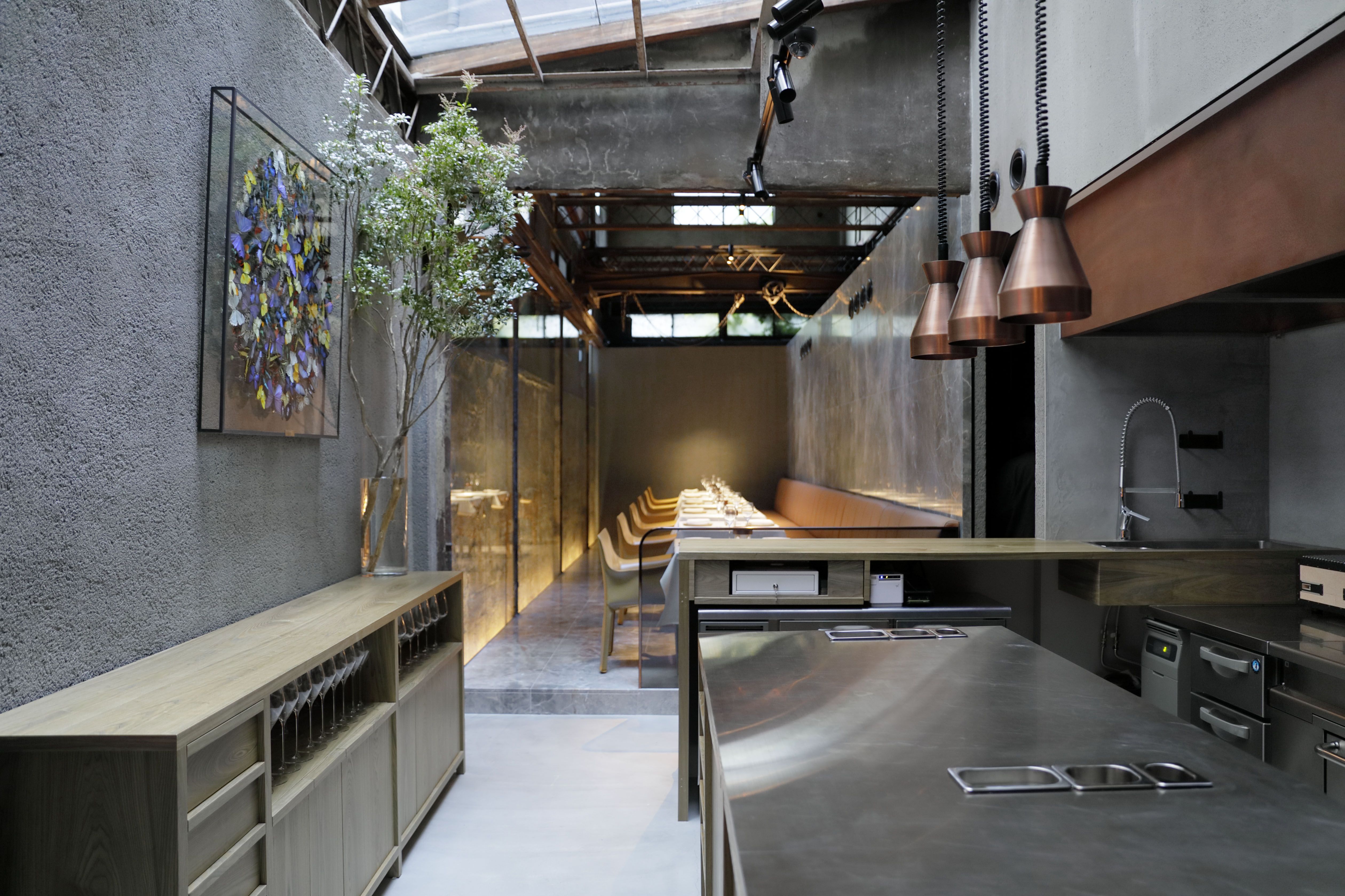 鉄工所跡地の面影を残すレストランで、四元素と季節のイノベーティブな料理を