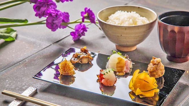 店内はシックで落ち着いた雰囲気の空間です。季節ごとに最もおいしいお米を毎日精米し、土釜を使用することにより甘みとうまみのあるお米をご用意。お米をおいしく召し上がっていただけるように、旬の食材を使った和食を提供しております。季節の前菜や鯛しんじょ、国産黒毛和牛の焼物といった豊富な料理をお楽しみください。旬の食材を使った料理と一緒に、日本酒や季節の限定酒なども取り揃えております。
