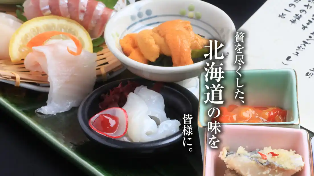 ・오늘의 선착순 메뉴 ・특선 사시미 7조각 (특대 양송이새우, 활가리비, 활어 등 홋카이도 제철 식재료 7종) ・게 식초 (털게, 왕게 등 계절에 따라 종류가 바뀜) ・시마호케 구이 (1인당 꼬리 1/4개) ・니세코 키타카리 자가 버터 (소금에 절인 오징어 포함) ・버터에 구운 가리비 ・계절 튀김 요리 ・연어알 덮밥 ・시지미 국 ・계절 디저트