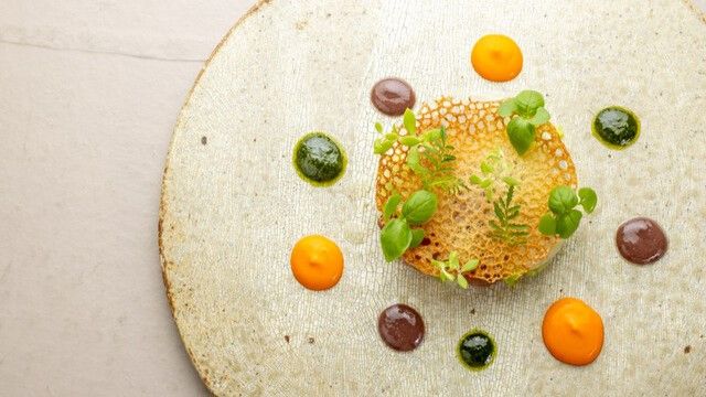 ヒラメのクリュ 雲丹 黄柚子 穂紫蘇 ビーツ