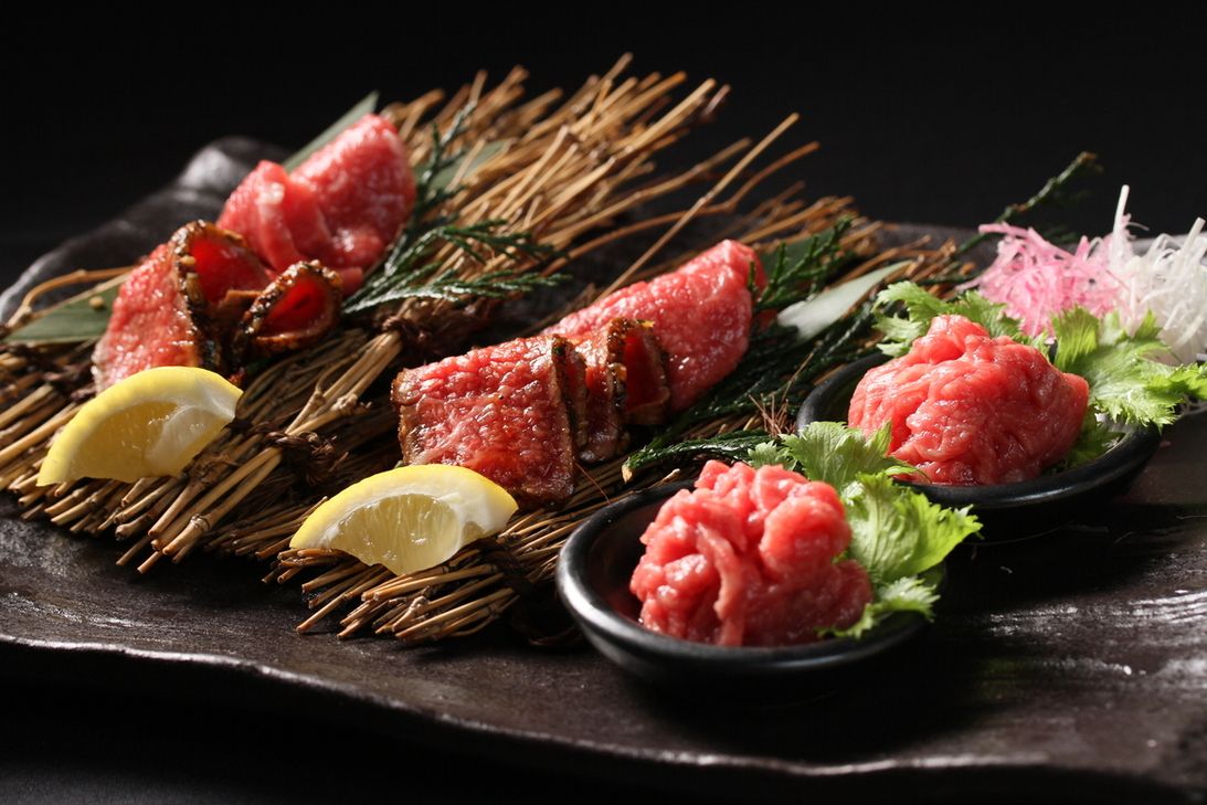 高級料亭のような雰囲気を持つ武蔵は、落ち着いた空間で特別な時間をお過ごしいただける焼き肉店です。個室や、カップル個室など豊富に用意したお席で、目利き歴20年以上という総料理長が厳選した質の高い肉をご堪能ください。様々な食べさせ方で味わうA5ランクの黒毛和牛などのこだわりの料理に、ホルモンや和牛炙り寿司など様々な肉料理をリーズナブルな価格で提供しております。また、ドリンクメニューは100種類以上を取り揃えております。料理を引き立たせる多様な種類のお酒をご賞味いただけます。