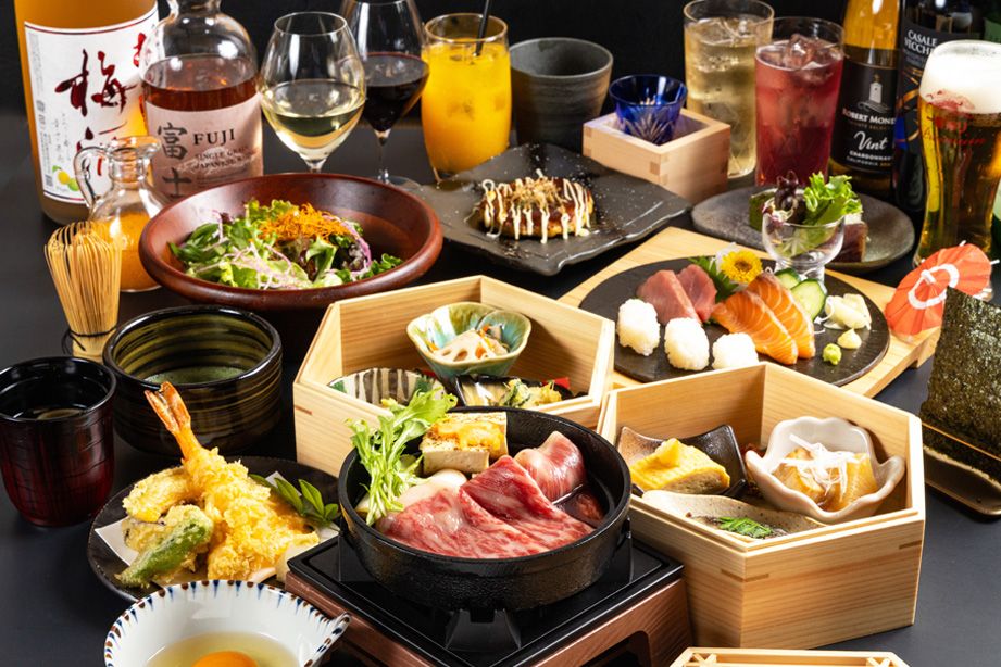 일본 요리 체험 코스자가제 참깨 두부와 ‘사츠마 차미 돼지’ 가쿠니 등을 나무 상자에 담은 전채 6종 모둠으로 시작하여, 갓 튀긴 튀김과 오코노미야키, 니기리 스시 등 일본 요리를 한껏 담은 풀코스입니다. 메인 요리는 저희가 사랑해 마지않는 홋카이도산 사로마 와규 최고급 브랜드 ‘유키히메’의 리브로스를 스키야키로 즐기실 수 있습니다. 식사의 마무리로 가고시마 자사 농장에서 재배한 ‘사츠마 치란 말차’를 제공합니다. 【+1,500엔으로 무제한 음료 이용 가능】
