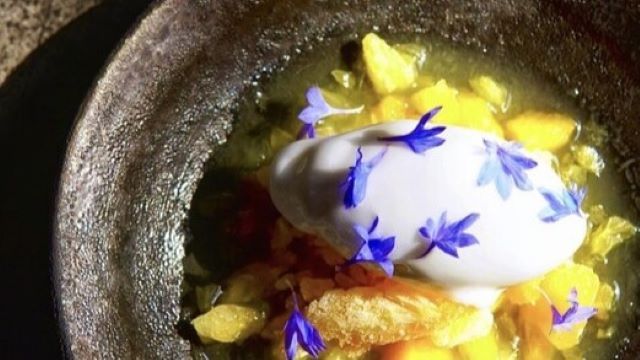 ・sweet beans spice flavor スウィートビーズ、香辛料、香り ・oyster with Meyer lemon. オイスター、マイヤーレモン ・celeriac fermentation and fish. 発酵根セロリと魚 ・maron pumpkin soup with zuccini. 栗かぼちゃのスープ、ズッキーニの花 ・club miso toast. 蟹味噌のトースト ・squid roast charcoal oil with eggplant source. 茄子のソース、備長炭のオイル、イカのロースト ・wagyu with mole de Aged black garlic. 熟成黒ニンニクのモレ、和牛 ・Watermelon honey and Cointreau granite. スイカ、蜂蜜とコアントローのグラニテ ・bilove dolce plate 愛しのドルチェプレート ※食後のドリンクは別途料金となります。