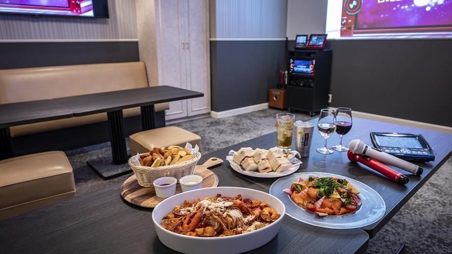 ホテル内にある豪華なカラオケルームで、最新機種DAM AiRと大型モニターを完備。まるでライブ会場にいるかのような臨場感をお楽しみください。昼はセルフドリンクバー、夜はアルコールフリーフロー付きプランで、スモークサーモンサラダやミックスサンドイッチなど、美味しい料理と共に素敵な時間をどうぞ。