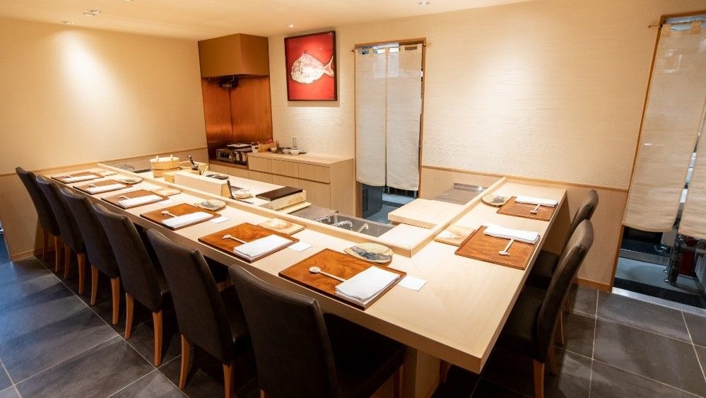「鮨 龍いち」は銀座にあるビルの5階に店を構えていますが、店内に入ると木のぬくもりを感じる上品で優雅な雰囲気を味わえる空間となっています。席はカウンター8席のみで、落ち着いてゆっくりとくつろぎながら食事を楽しめます。メニューはランチ・ディナー共にその時期最高の食材を用いたコース料理のみですが、その日のおすすめの魚の中からお選びいただくことも可能です。また、料理によく合う酒類も多数ご用意しております。料理人の洗練された技術を間近で感じながら、最高の食事をお楽しみください。