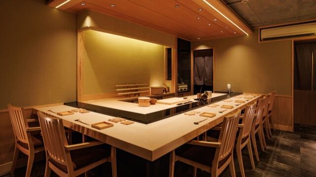 お客様が自然を感じられるよう、木材を積極的に用い、洗練させた和の空間。温もりを感じられる木のカウンターの目の前で、こだわりの鮨を提供いたします。職人がひとつひとつ丁寧に握りあげる、極上の鮨でございます。鮨と共に、職人が手掛ける日本料理もご堪能ください。お客様がただ単に美味しく味わうだけでなく、料理によって感動してくださるよう、時には西洋料理の要素も取り入れながら、日々メニューを考えております。見た目や香りにもこだわった日本料理ですので、五感でお楽しみいただけます。