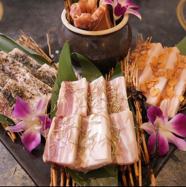 Teji Tokyoでは、歴史を大切にして全てのお客様が満足のいく本場の韓国料理を楽しむことができます。 お肉は豚肉を中心としたものが多く、その中でもお店が自信を持って提供する一品は梅山豚のサムギョプサルです。豚肉は茨城県塚原牧場で生産されている年間で100頭程しか生産されないという希少な豚を使用しています。肉汁の多さと歯ごたえの柔らかさが特徴で、口に入れた時の肉から出る旨み成分が多くの利用客の心を掴んでいます。