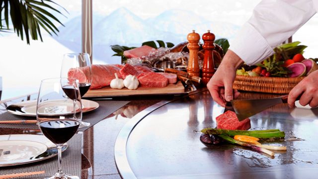 素晴らしい景色を眺めながら北海道などの旬の食材を味わえるレストラン