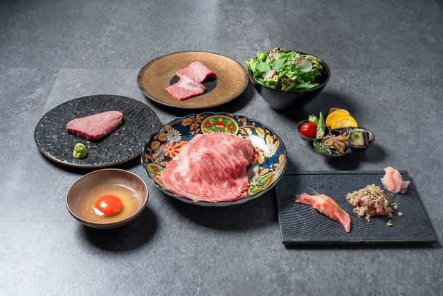 ◇Green salad ◇Japanese Black Wagyu Sushi ◇Original kimchi ◇Seasonal vegetable namul ◇【Our signature】Japanese Black Wagyu Sirloin Arigatayaki - with Aomori Prefecture 16th generation red egg - ◇Charcoal grilled Japanese Black Wagyu prime cut (marbled・sauce) ◇Charcoal grilled Japanese Black Wagyu prime cut (lean・sauce)