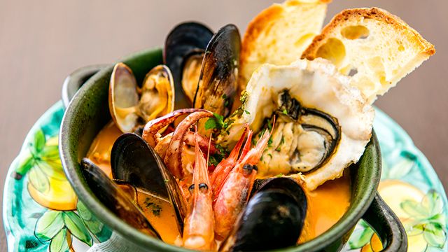 レンガ造りの建物を入ると、本場イタリアのおしゃれな酒場をイメージした店内が広がります。老舗イタリア料理店やイタリアで修行したシェフがこだわった自慢のメニューが豊富にございます。いわしと松の実のマリネやトレッチャのカプレーゼ、本日の鮮魚と海の幸のズッパディペーシェといったメニューをご用意。料理と相性の良いワインも豊富で、イタリア産のワインを多数取り揃えています。