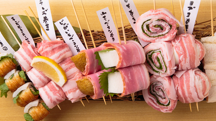 当店は独創的なネタが魅力の焼き鳥屋です。中でも定番の豚バラ、ずり、皮を竹串でなくバーベキュー串を使って焼いたBIG串は、見た目のインパクトも凄く大人気です。このほか山芋やクリームチーズなどの一風変わったネタをベーコン等で巻いた巻き物も人気があります。また、牛、豚、鶏といった食材は全て国産を使用し、見た目だけでなく味にもこだわっています。古民家風のお店は1階はシックで落ち着いた雰囲気で、2階は明るい雰囲気のお座敷です。デートや女子会から大人数の宴会まで、様々な用途でご利用下さい。