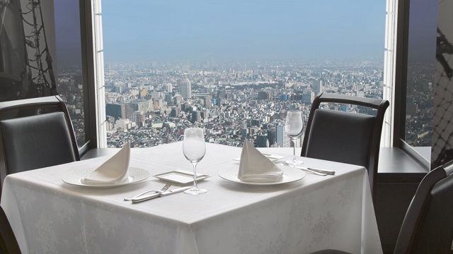 『伝統と革新』美食のモダンフレンチと絶景空間のレストラン 料理のクオリティは完成した【その瞬間】に最高のパフォーマンスを生み出す。 五感を刺激するテーブルパフォーマンスで仕上げるモダンフレンチ、地上210mから望む 解放的な絶景と共に記念日やお祝いなどの特別な1日をご一緒にごゆっくりお楽しみください。