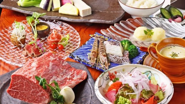 Carefully selected Japanese Black beef steak lunch courseKyosaien's steaks are made with carefully selected, top-quality A5-grade beef. Combining fine-grained meat texture with the sweetness of premium fat, we cook each cut to bring out its unique flavor. This steak course, unique to Kyosaien, features three appetizers, grilled vegetables, seasonal vegetable salad, rice, miso soup, pickles, and dessert, and puts the focus on the ingredients. Steak (Cut & Price)