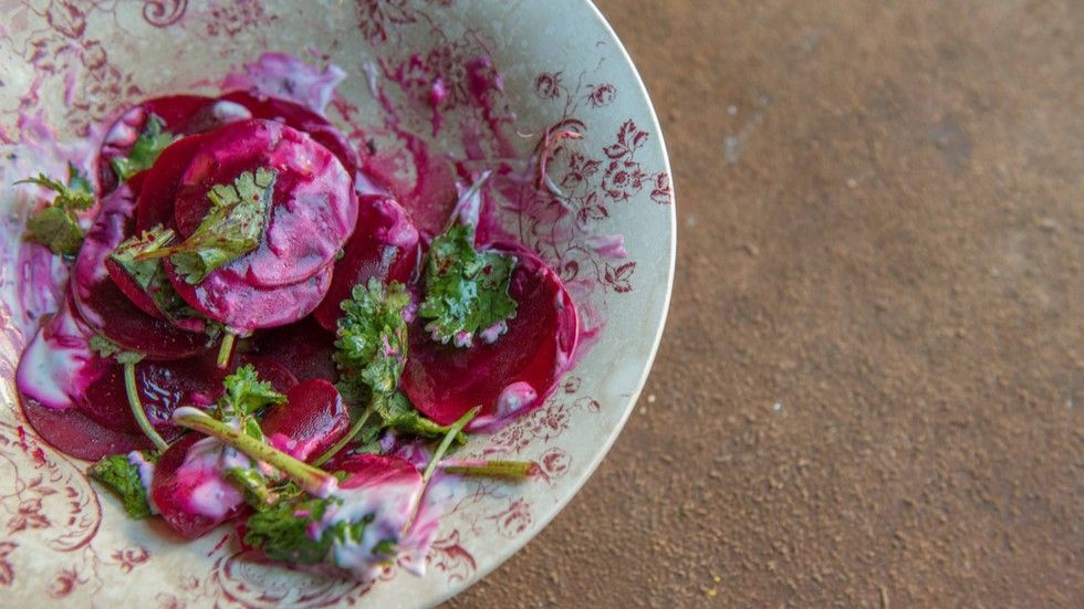 5 appetizers using seasonal organic vegetables / Main dish / Natural yeast bread / Drink included / Menu for a certain early summer day / Avocado with pistachio sauceEggplant, peach and basil saladOrganic lemon marinated red shrimpGrilled homemade bacon and Manganji peppers from KyotangoFennel seed oilLightly grilled scallops and roasted beetsYogurt with cardamom sauceNatural yeast bread*Grilled Yoro pork shoulder loinRed onion balsamic sauceMarjoram, lemon thyme, pineapple sage*Lightly roasted coffee or fresh herb tea*The course content is an example and may differ from the content provided on the day.
