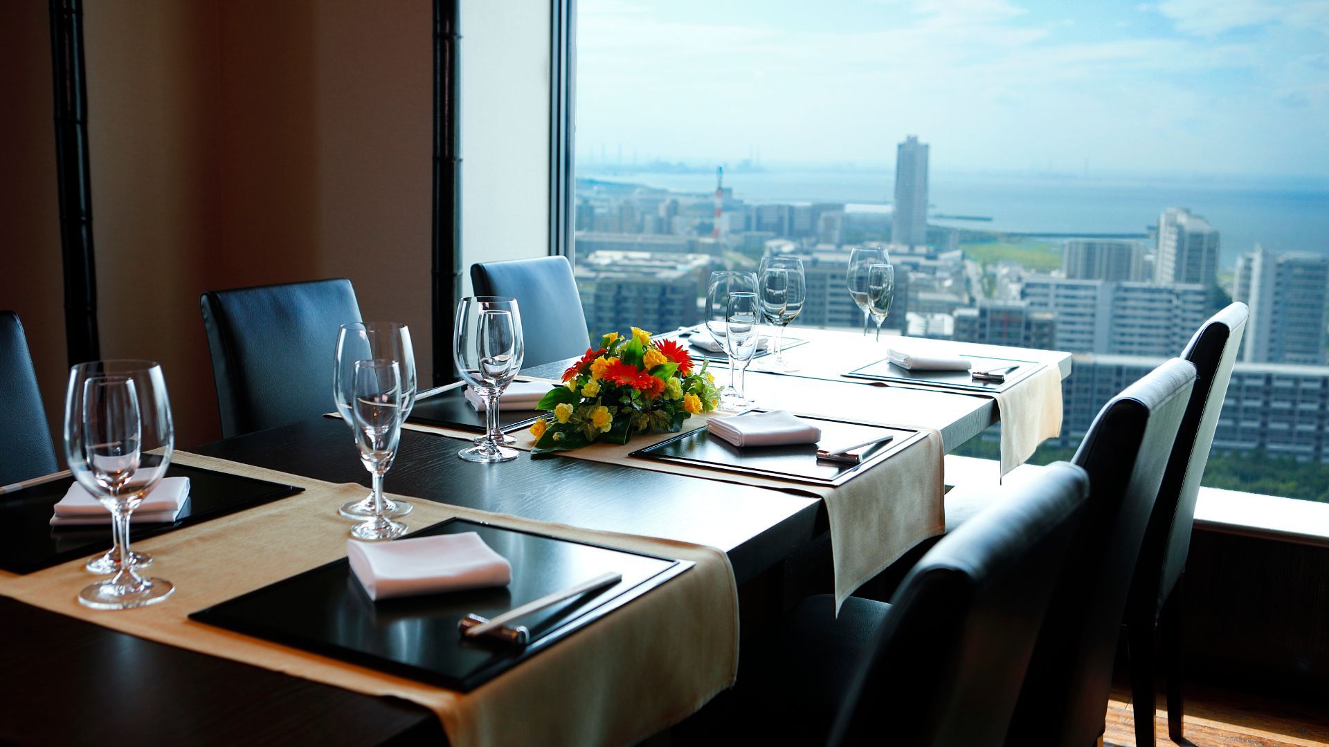 東京湾の眺望をバックにシェフの華麗なる手捌きが楽しめる鉄板焼き専門店